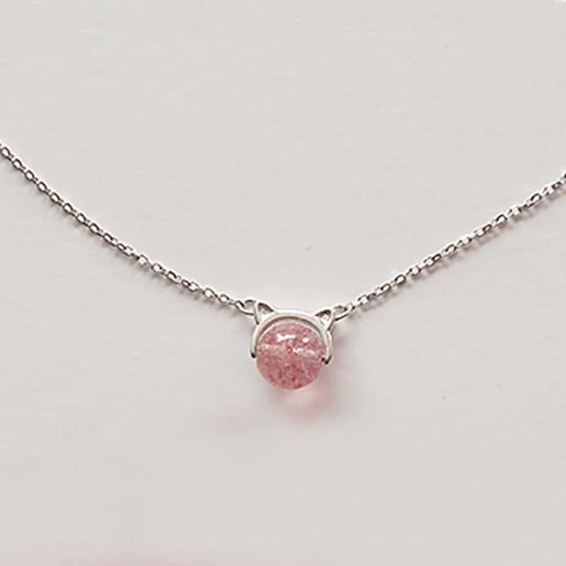 cartoon cat cute 925 Sterling silver Fashion Choker Necklaces Jewelry for Women natural Strawberry