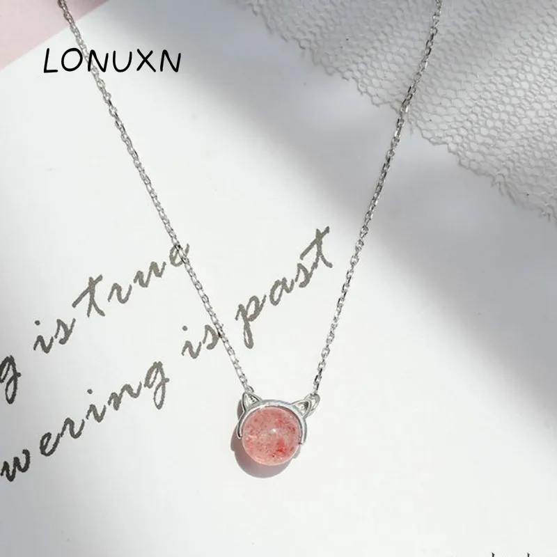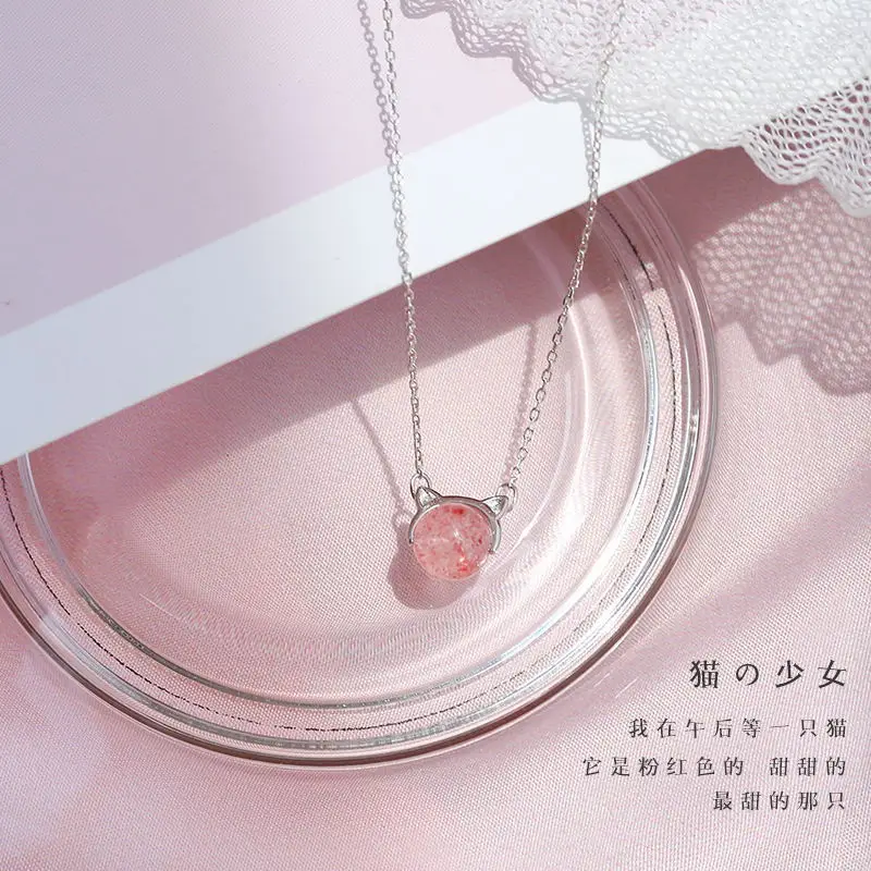 REVIEW TOP SELLER cartoon cat cute 925 Sterling silver Fashion Choker Necklaces Jewelry for Women natural Strawberry