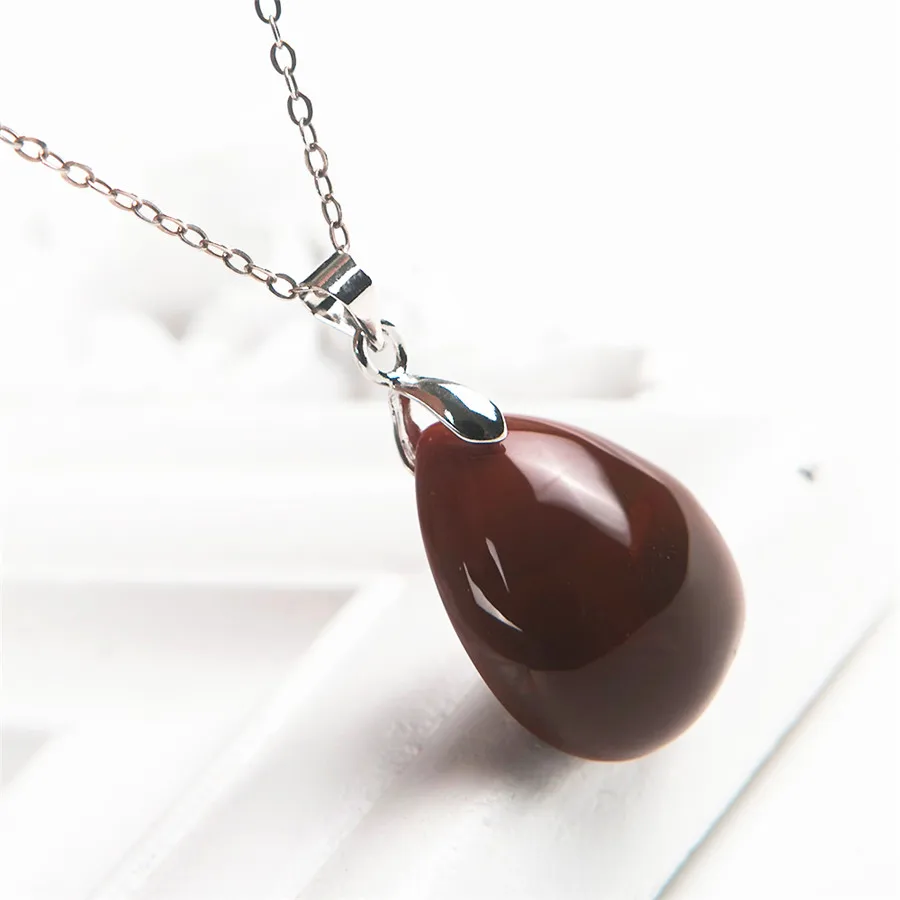 Drop Shipping Natural Warring States Red Gem Stone Crystal Water Drop Bead Necklaces Pendants 23*18