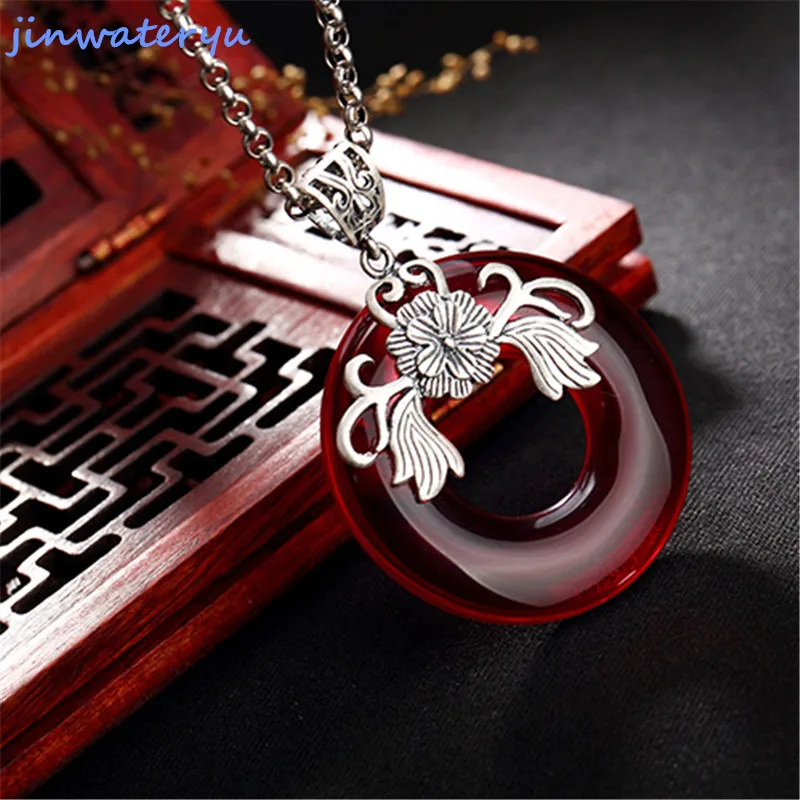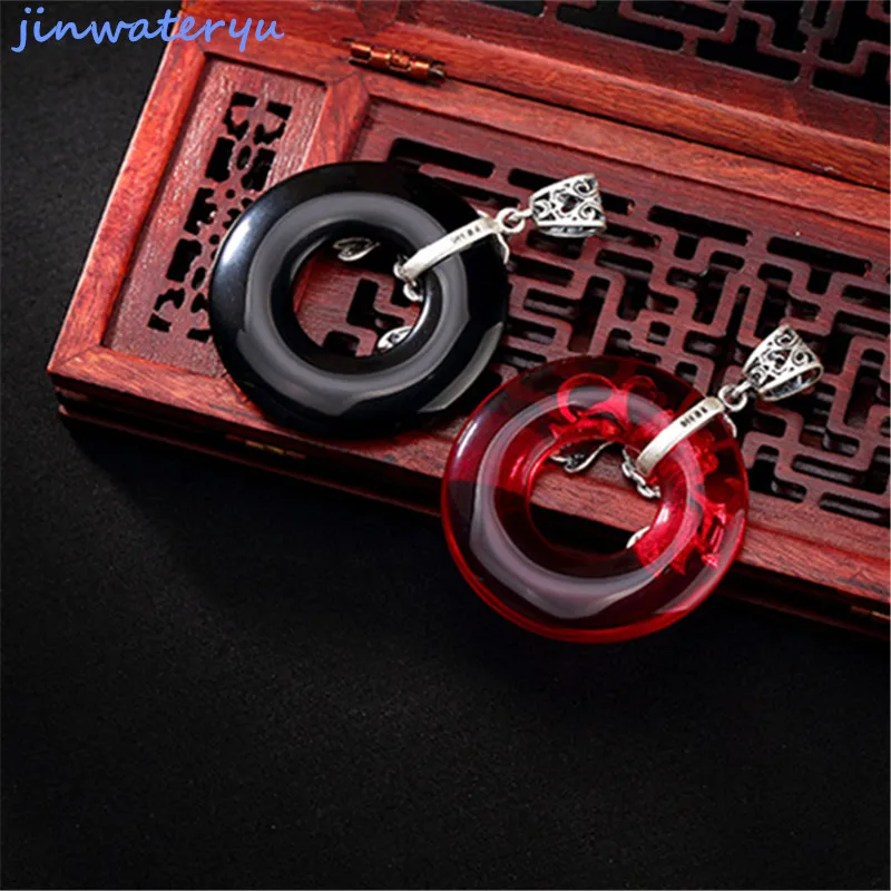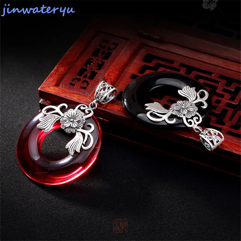 jinwateryu 925 silver flower Pendants Fashion Jewelry red black chalcedony Pendants 925 sterling Si