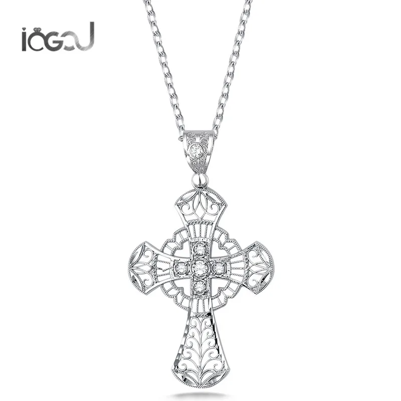 Best Seller IOGOU 925 Sterling Silver Hollow Cross Pendants Men Women Hip Hop Jesus Christ Wedding Pendants For