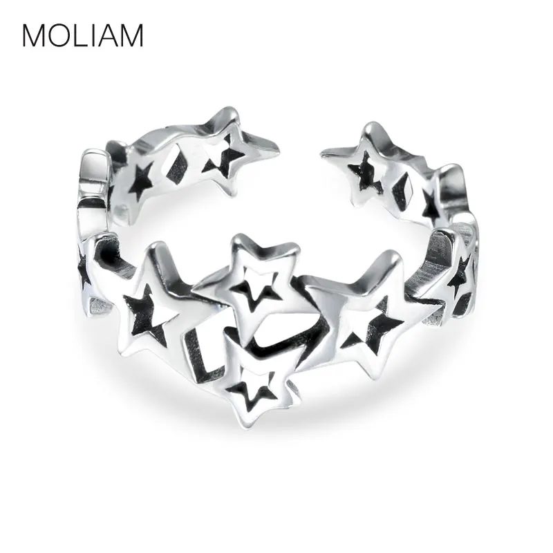 HOT SALE MOLIAM Genuine 925 Sterling Silver Open Rings for Women Retro Star Stackable Finger Ring Fine Weddi