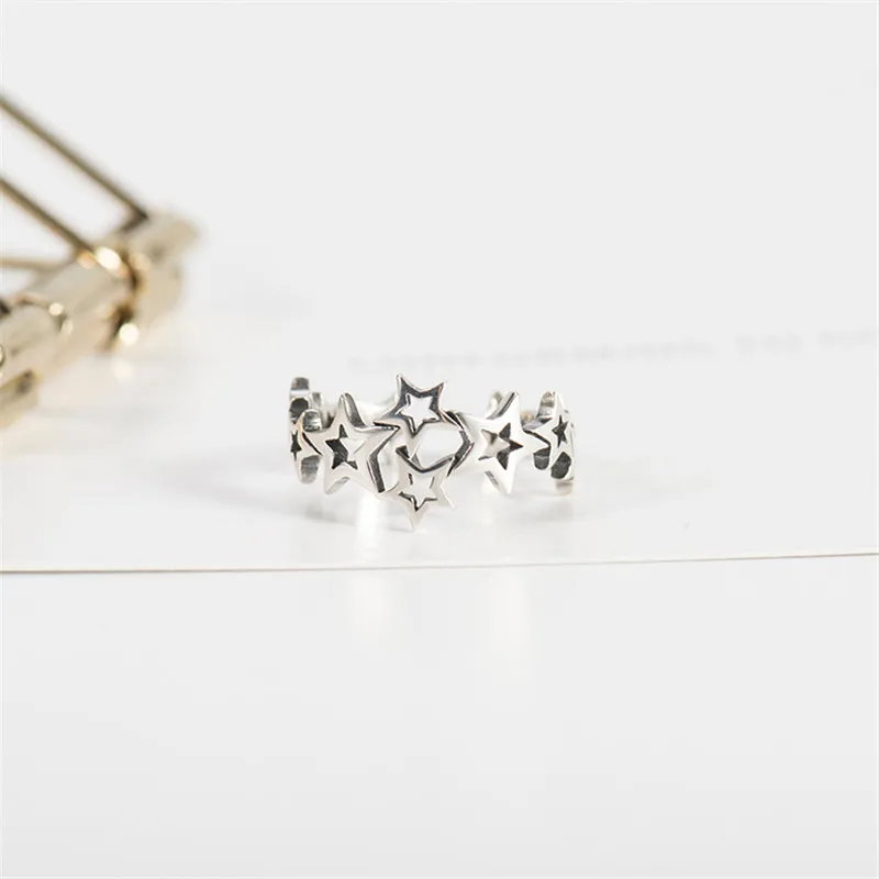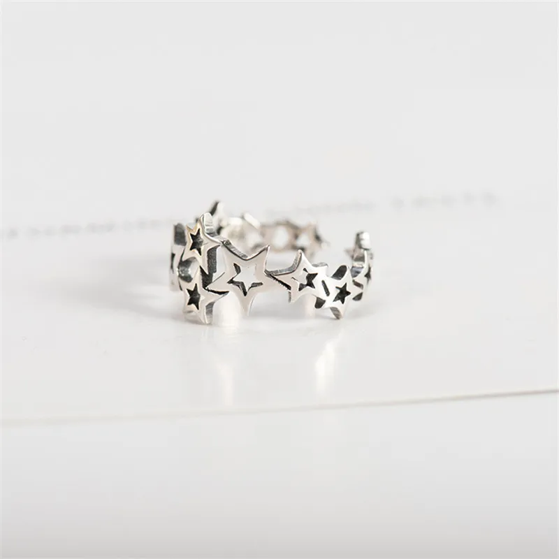 MOLIAM Genuine 925 Sterling Silver Open Rings for Women Retro Star Stackable Finger Ring Fine Weddi