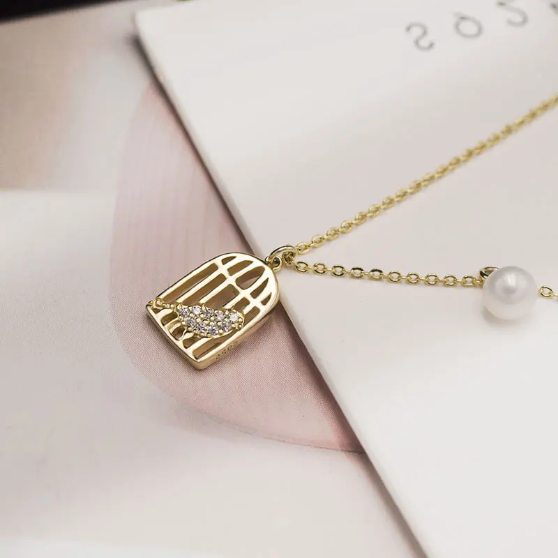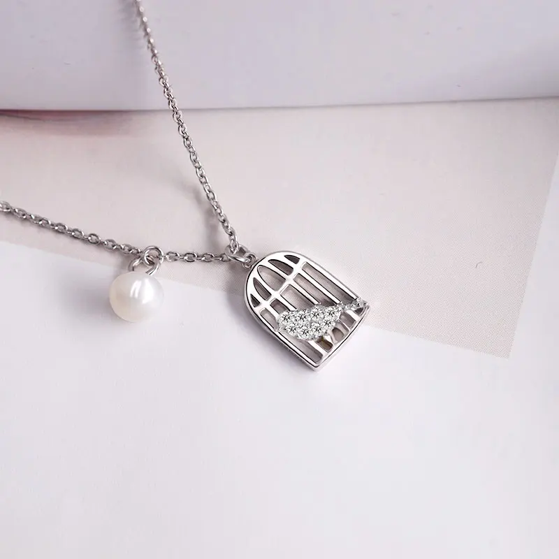 Best Seller New Fashion 925 Sterling Silver Birdcage Necklaces&Pendant Crystal Clavicle Short Necklace for Wome