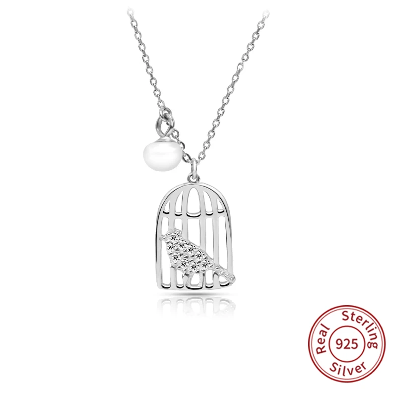 ORIGINAL New Fashion 925 Sterling Silver Birdcage Necklaces&Pendant Crystal Clavicle Short Necklace for Wome