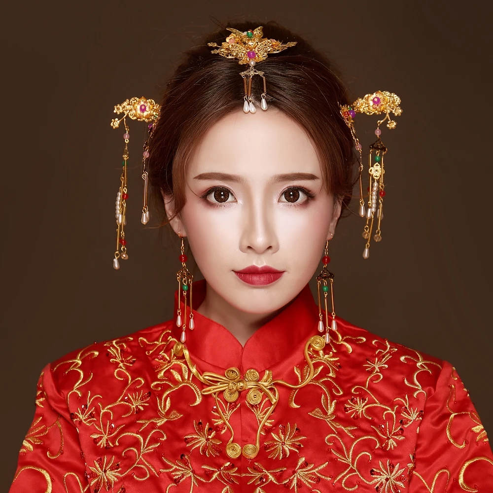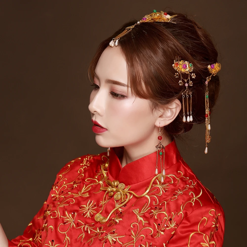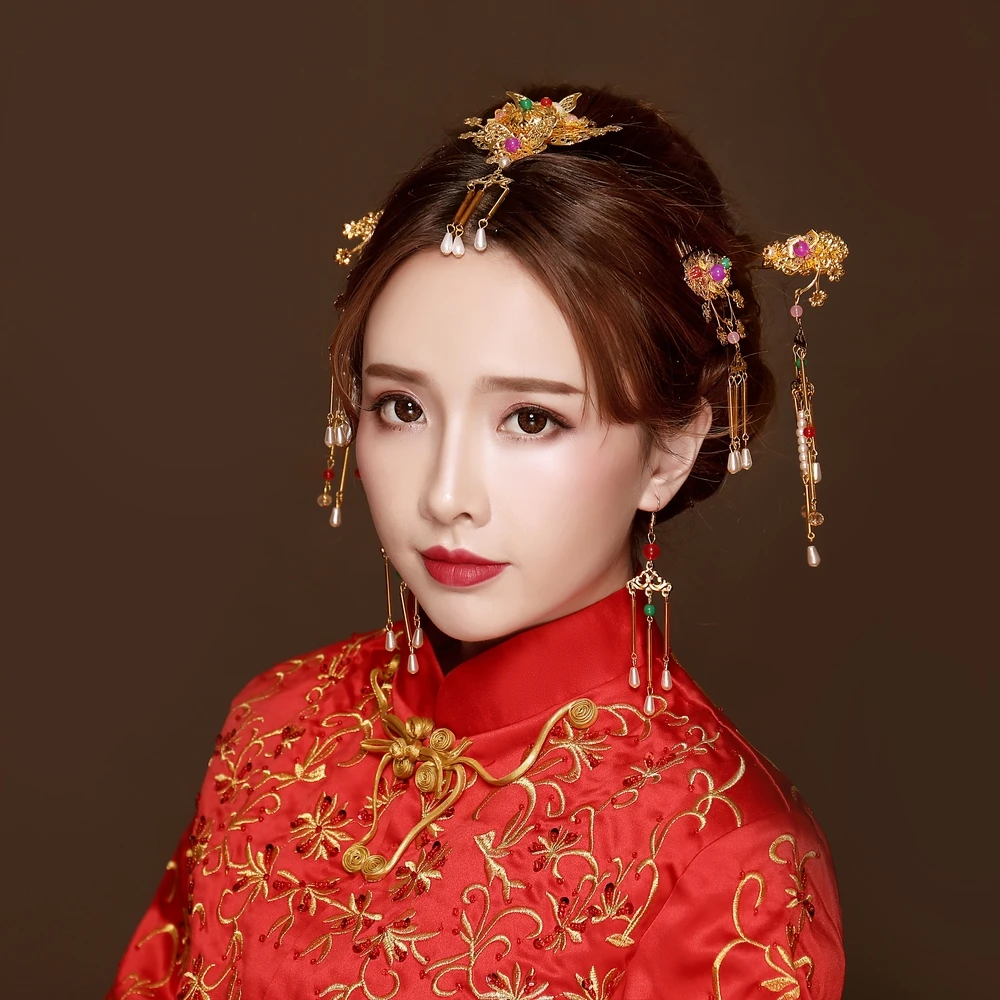 Simulated Pearl Headwear Hair Jewelry Sets Vintage Ancient Chinese Style Wedding Bridal Headdress H