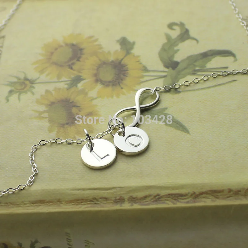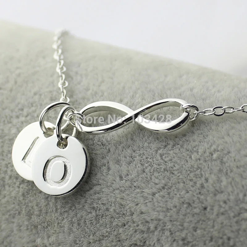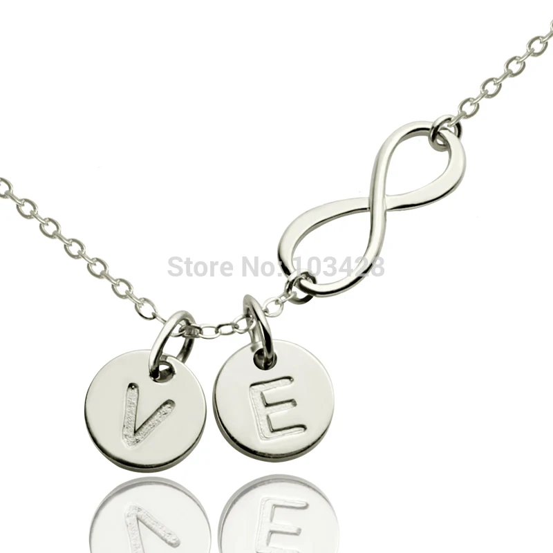 Hot Sale AILIN Personalized Infinity Necklace 925 Silver Infinity Name Necklace 2 Initials Necklace Monogram