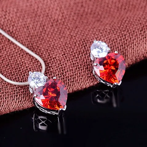 2017 new Heart Natural semi-precious stones love red pendant for girls garnet 925 sterling silver w