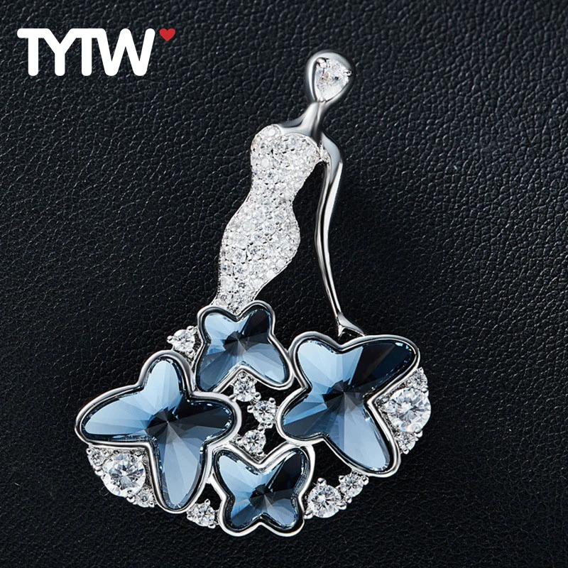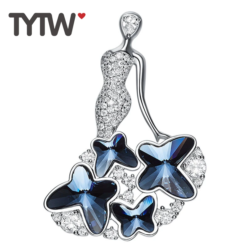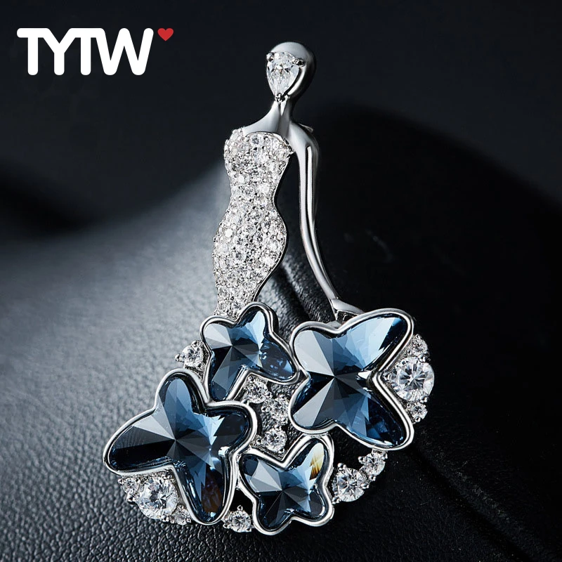 TYTW Crystals from Austrian rhodium Elegant blue butterfly dress party wedding women brooch jewelry