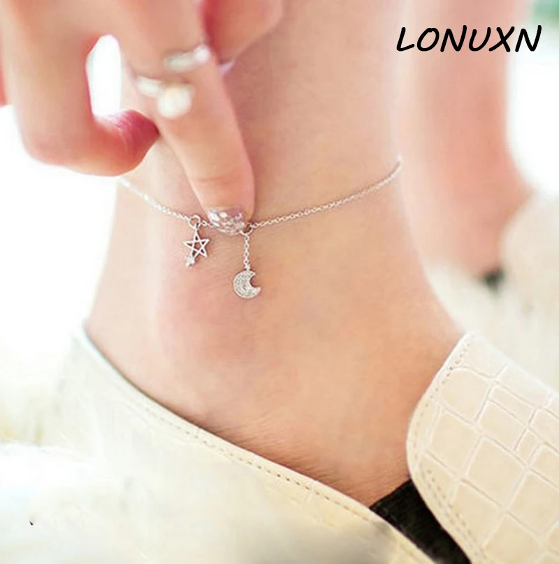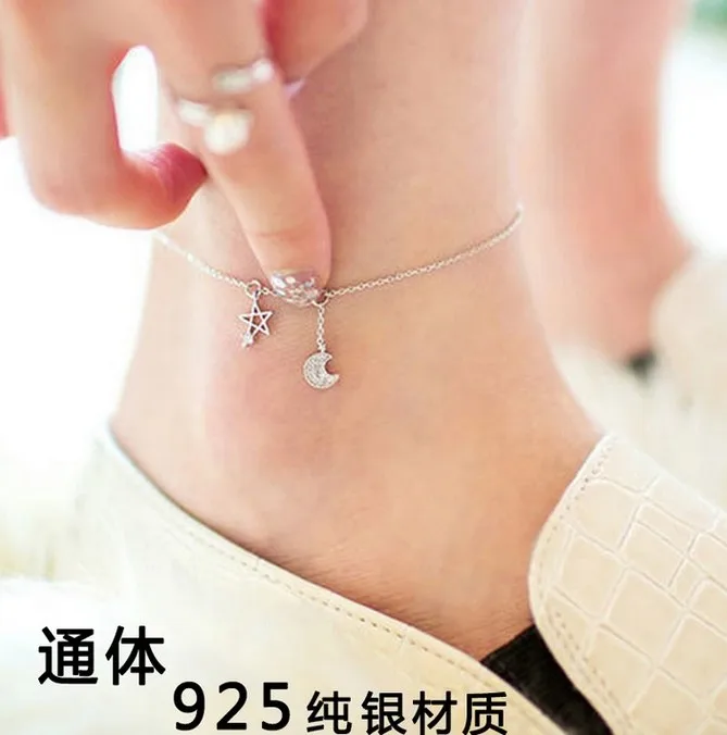 REVIEW TOP SELLER hexagon Hexagram moon High quality stars female Korean Anklet 925 silver retro Japan simple Korea f