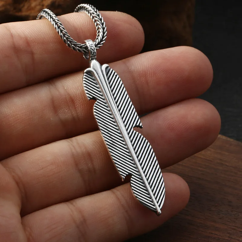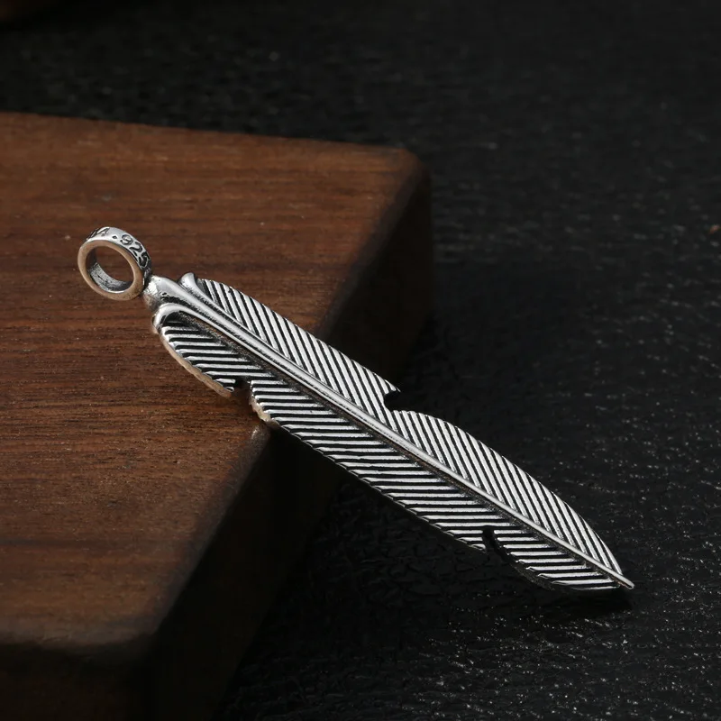 BEST QUALITY Wholesale S925 Sterling Silver Jewelry Retro Thai Silver Fashion Simple Feather Pendant Men And Wom