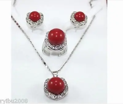 TOP red 10mm-14mm Shell Pearl Necklace Earrings Set NATURAL Quartz Crystal Women Wedding free shipping