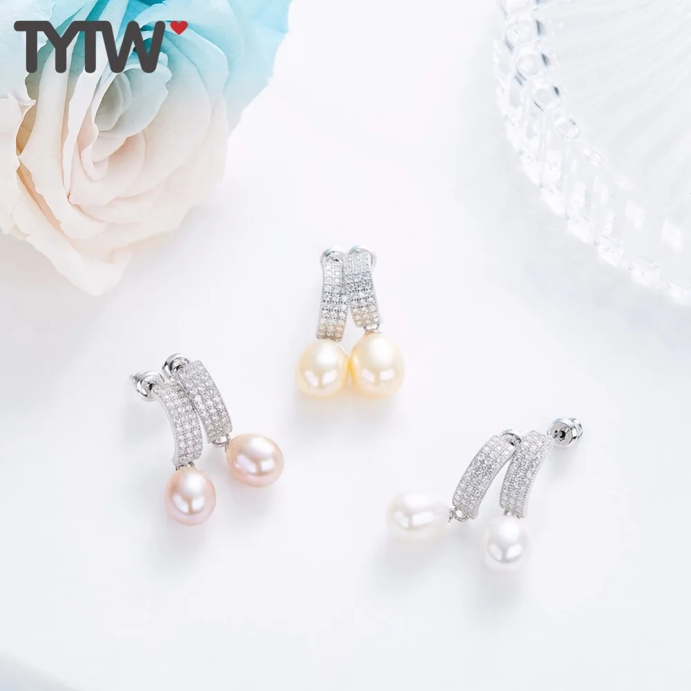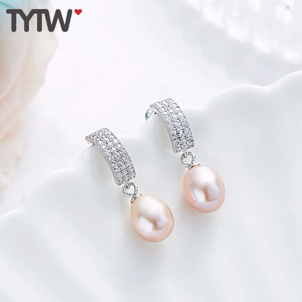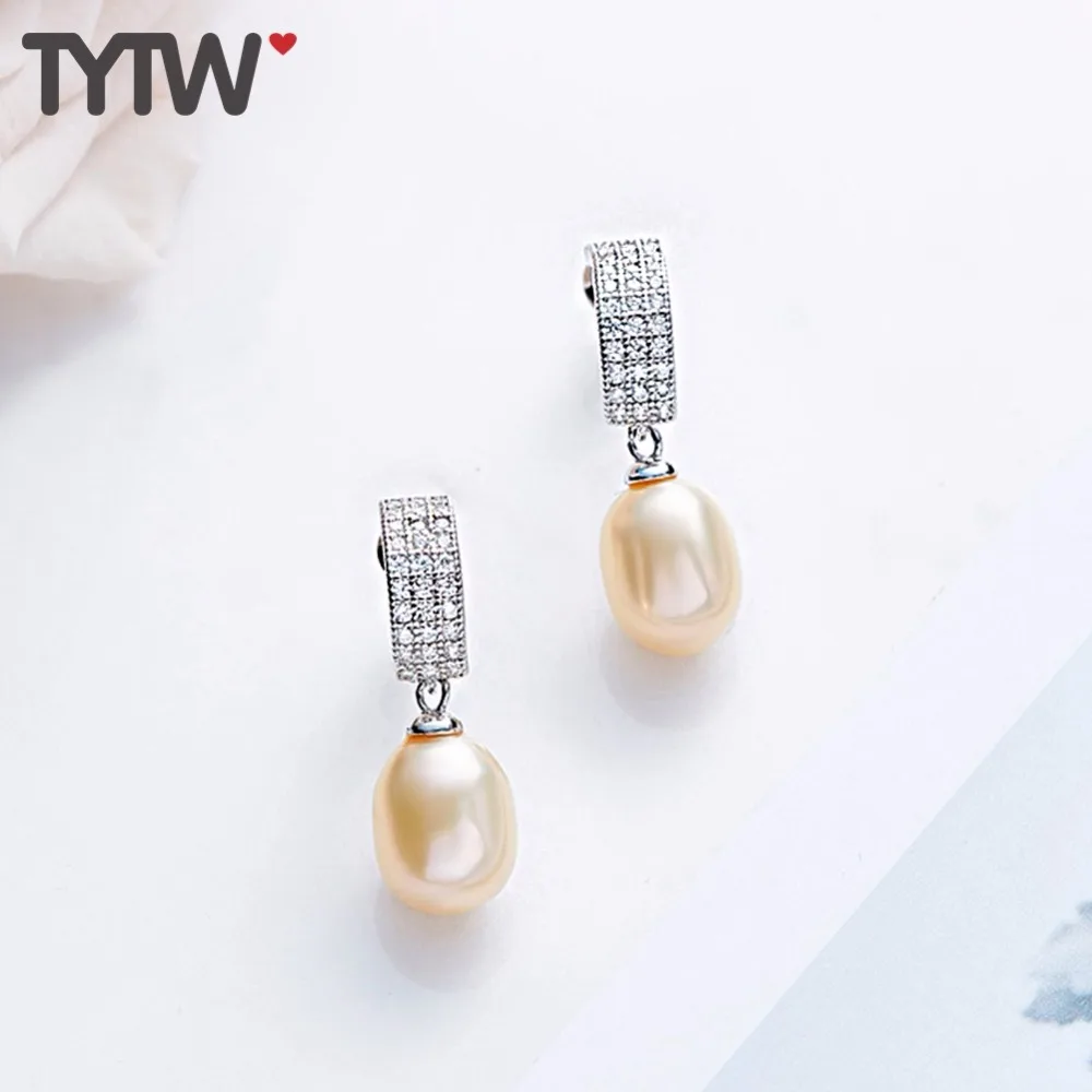 TOP TYTW 925 sterling silver earring White Shell Pearl Fashion Women Jewelry Customize Fresh Water Pear